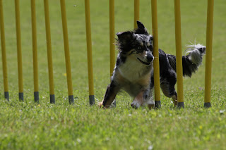 Tiffy har fått träna lite 2:ans fjärr och det går saaaakta framåt. Även hon har fått träna "håll fast apporten" och det är hon ju så bra på. Idag var det agilityträning igen och vi fick till en riktigt bra träning. Medan vi höjde/sänkte hinder fick hon träna platsliggning och sittande och det gör hon med bravur. Hon sitter/ligger kvar så fint även fast det kommer fram hundar nästan ända fram till henne.